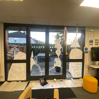 Me and four other coursemates from my Illustration course were asked to paint winter themed window designs at the Crownhill Library in Plymouth.